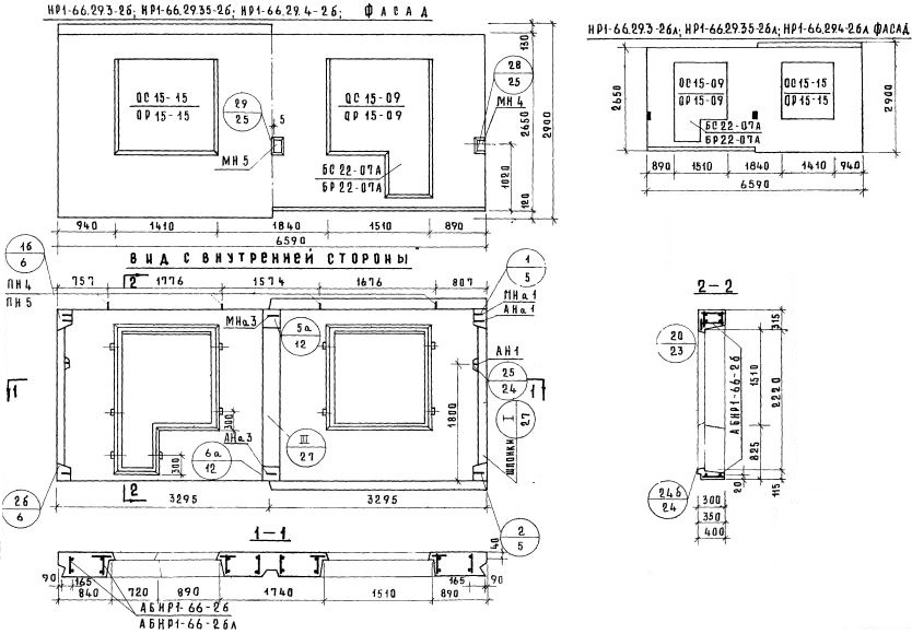 НР1-66.29.4-2бл   Наружная стеновая панель рядовая по Серии 1.132-1.