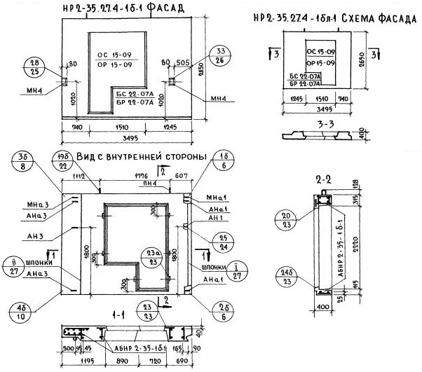 НР2-35.27.4-1бл-1   Наружная стеновая панель рядовая по Серии 1.132-1.