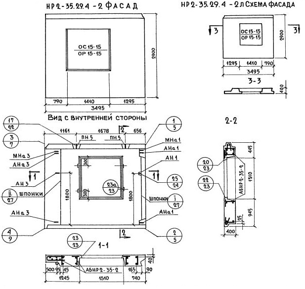 НР2-35.29.4-2   Наружная стеновая панель рядовая по Серии 1.132-1.